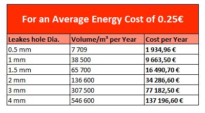 A one millimeter hole costs hundreds or even thousands of euros every year. You may not even know it, but a compressor has to do a lot more work to provide enough air to tools when there are leaks.